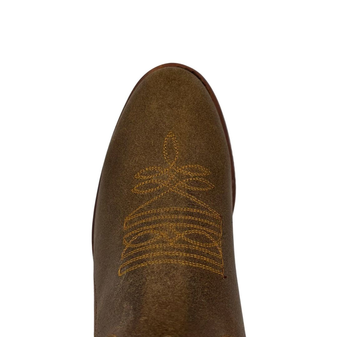 Botí per a dona Valverde del Camino fet a mà amb serratge de boví de color marró. Cremallera lateral per a més comoditat a l’hora de calçar-se i punta arrodonida. Adornades amb el clàssic pespunte a l’empenya i en contrast a la canya. Taló lleugerament inclinat i sola de cuir cosida.