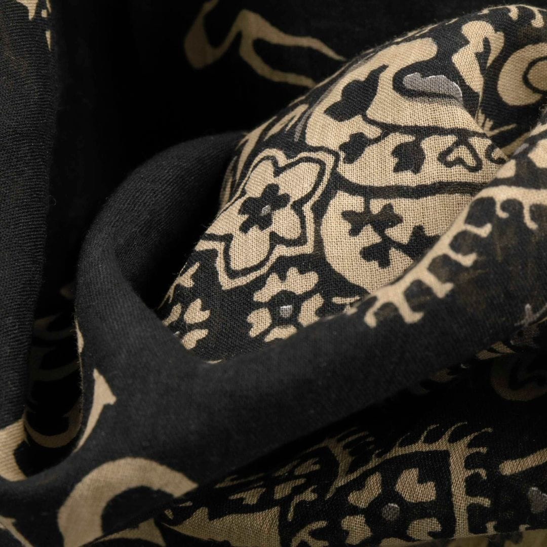 Bandana estil western Stetson, confeccionada en cotó suau i transpirable per a un ús còmode durant tot el dia. El seu disseny en negre amb elegant estampat tipus paisley en contrast aporta un toc clàssic i versàtil, perfecte per complementar qualsevol look casual o cowboy/cowgirl. Ideal per portar al coll, al cap o com a accessori distintiu en el teu outfit diari.