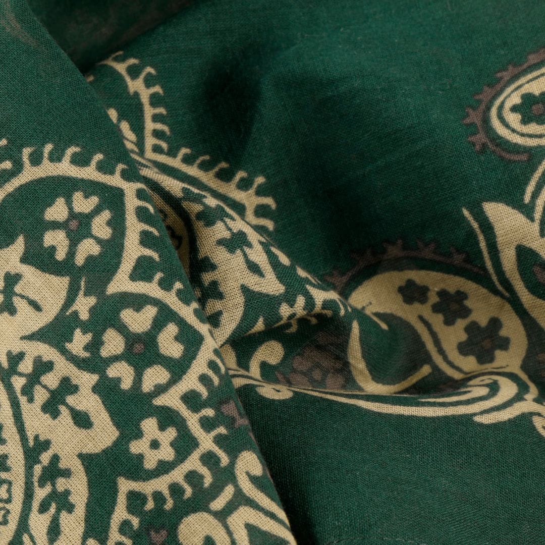 Bandana estil western Stetson, confeccionada en cotó suau i transpirable per a un ús còmode durant tot el dia. El seu disseny en verd amb elegant estampat tipus paisley en contrast aporta un toc clàssic i versàtil, perfecte per complementar qualsevol look casual o cowboy/cowgirl. Ideal per portar al coll, al cap o com a accessori distintiu en el teu outfit diari.