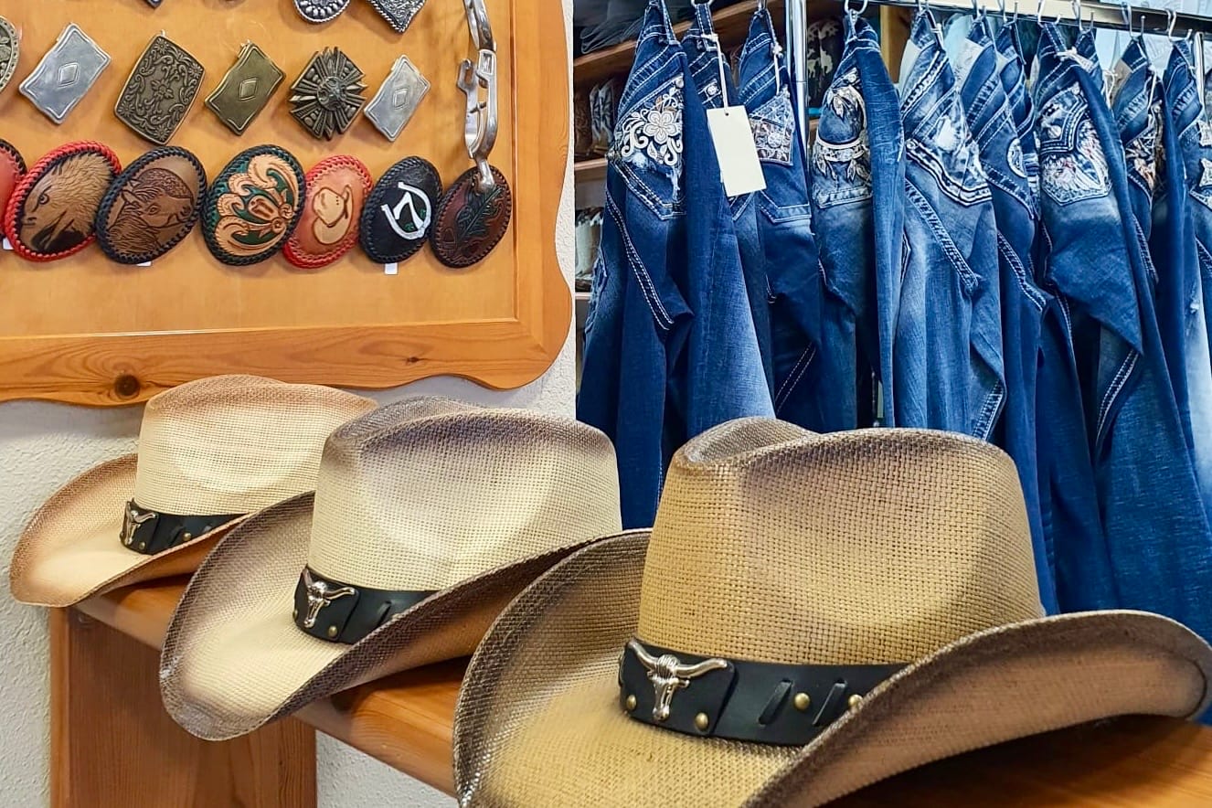 The must-haves to complete an authentic country look: hats, belts, buckles, jeans...