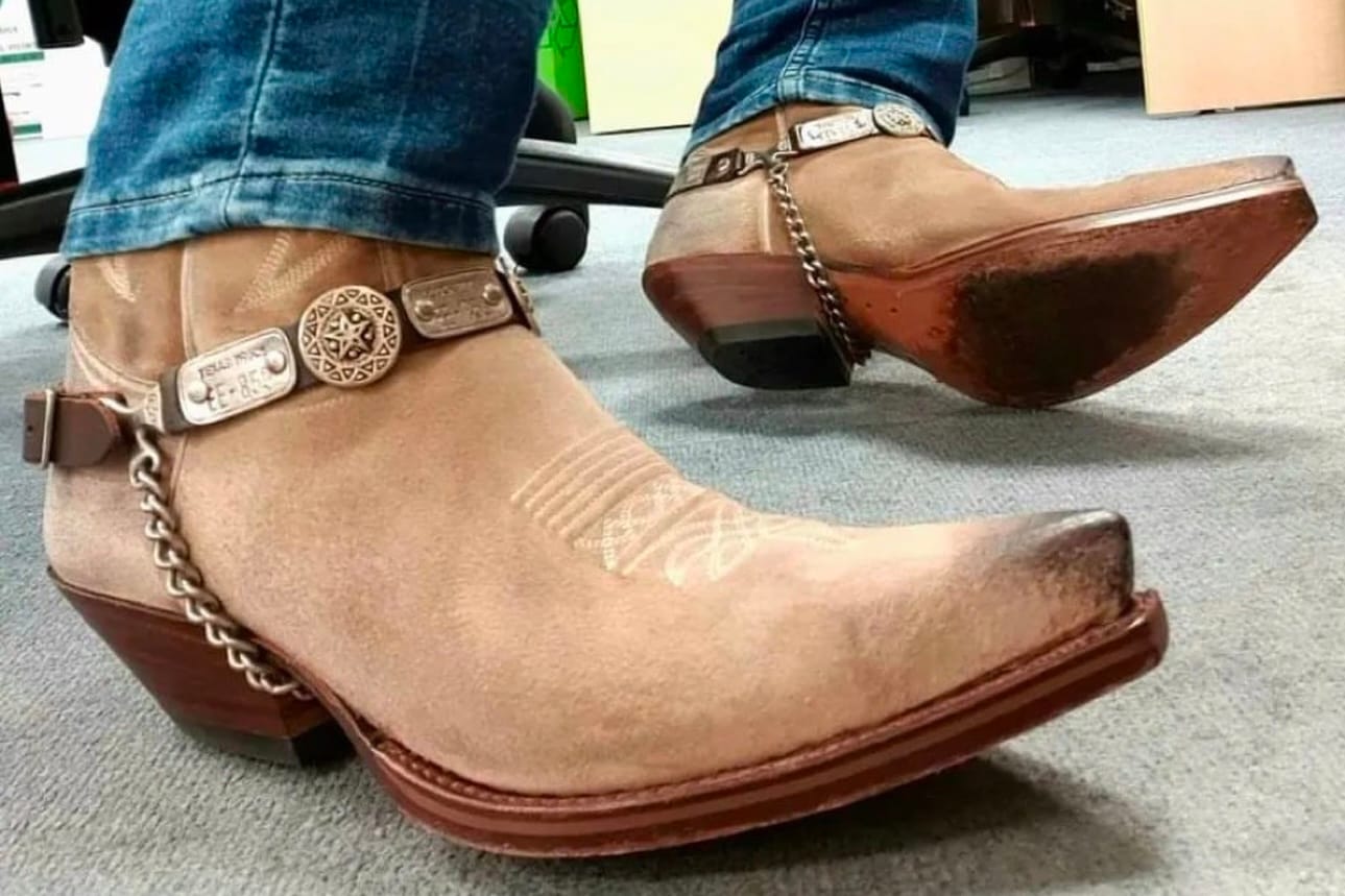 It is one of those shops that will soon be 50 years old in the same place. A real institution in cowboy boots, mid-calf cowboy boots, high or low, and with a good assortment of buckles and belts.