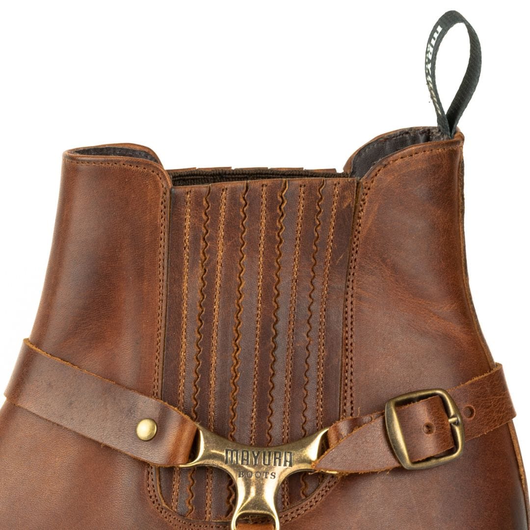 Square toe ankle boots Mayura Boots for men, made of top quality oiled cowhide leather. Padded insole, adjustable decorative harness and side elastics for a perfect fit. Leather sole and Goodyear stitching. Exclusive model that you will only find in our shops.