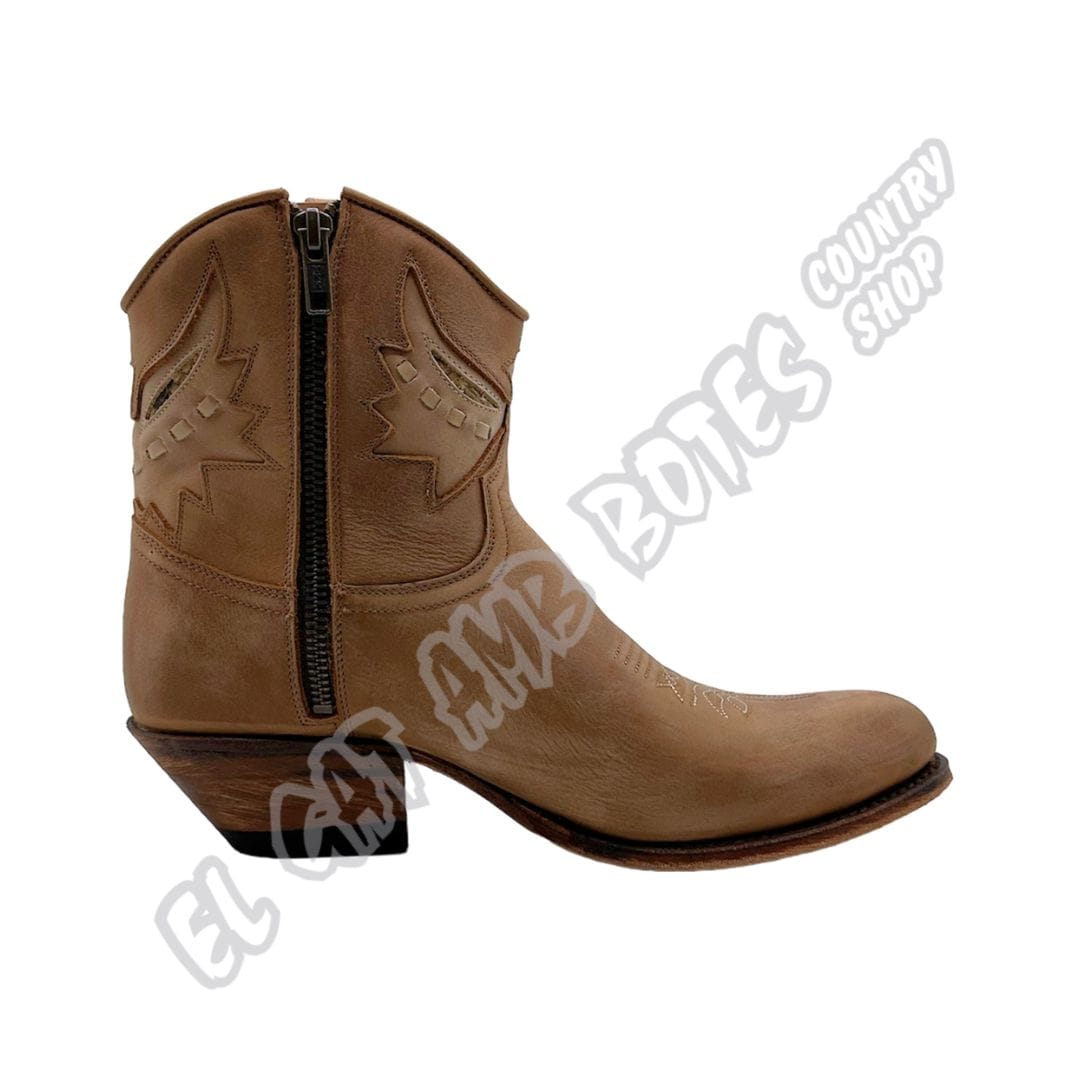 Ankle boot Sendra Boots for women, in washed brown leather with beige eagle detail on the shaft. Side detail with genuine python leather and star-shaped appliqués. Inner side zip for greater comfort when putting them on. Leather sole and Goodyear stitching. Exclusive model that you will only find in our shops.