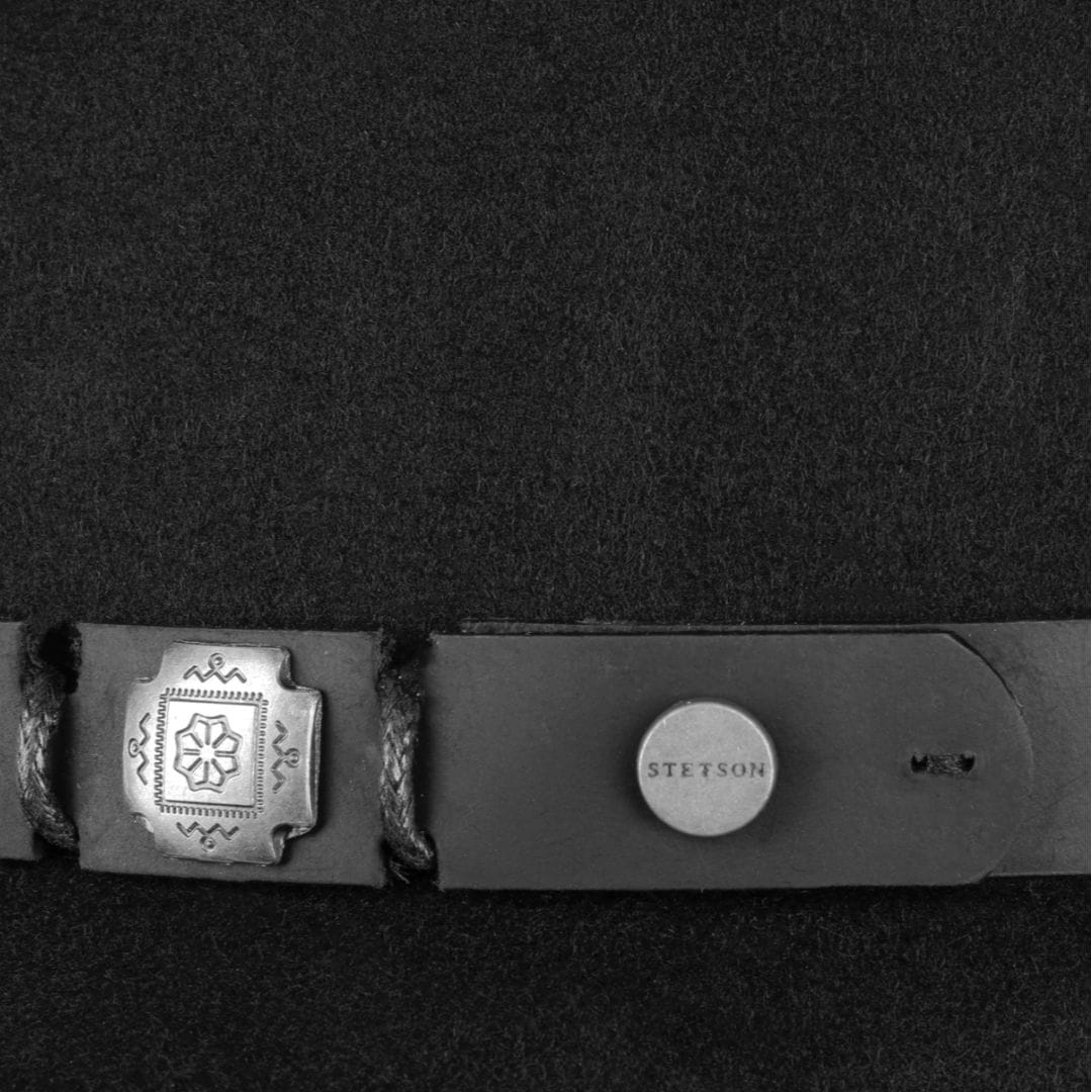 Chapeau cowboy en laine. Grâce à son imperméabilité , ce chapeau est particulièrement pratique pour une utilisation en extérieur. Fabriqué avec soin à partir de 100 % de laine de mouton australienne, il offre chaleur et douceur pour un confort optimal. Sa lanière en cuir noir ornée de détails métalliques apporte une touche élégante et raffinée, facile à assortir avec de nombreux styles. Les amateurs de style western et de vie en plein air apprécieront sa calotte de type Teardrop (env. 10,5 cm) et son large bord (env. 8,5 cm) relevé sur les côtés — des caractéristiques emblématiques qui confèrent à ce chapeau tout son charme et caractère western, tout en assurant une protection efficace contre les intempéries.