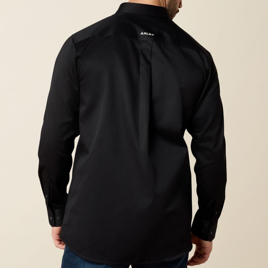 La camisa vaquera Ariat casual de estilo clásico, resistente y perfecta para el uso diario. Presenta un corte slim que se ajusta al pecho, la cintura y las mangas, ofreciendo un look moderno y favorecedor. Incorpora tecnología Greater Arm Mobility™ para una mayor libertad de movimiento, ideal tanto para montar como para el trabajo. Cuenta con cierre de botones y logotipos bordados en cuello, incluyendo el distintivo branding de Ariat en la manga.