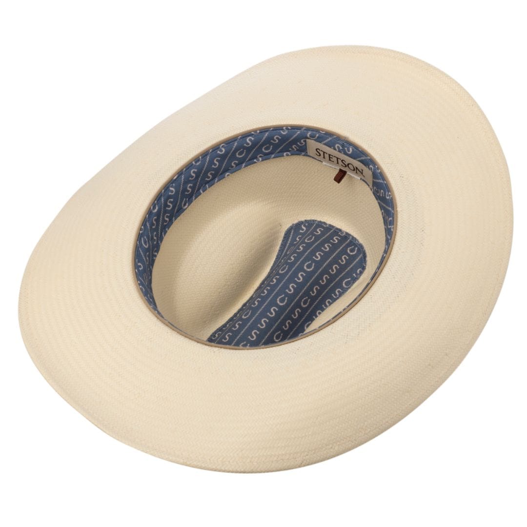 Sombrero cowboy fabricado en paja Toyo trenzado laboriosamente color natural. Copa Cattleman de 12 cm (aprox) y ala de 9 cm (aprox). Badana interior muy suave y absorbente para mayor confort y ala moldeable. Decorado con una tira de piel marrón y pespunte a contraste y el icónico pin metálico de Stetson a un lado para un estilo perfecto. Su ligereza y protección contra el sol hace que sea el mejor aliado en los cálidos días de verano.